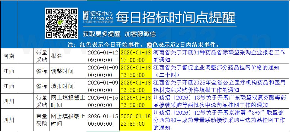 今日政策汇总与招标时间点提醒1月17日-1月19日