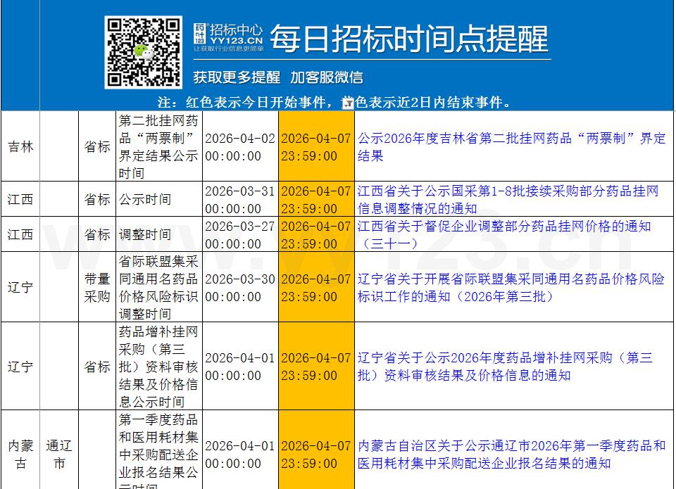 今日政策汇总与招标时间点提醒4月4日-7日