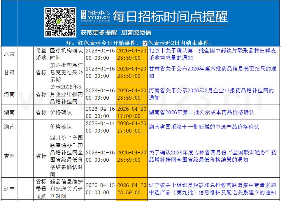 更多时间招标节点提醒,下载附件了解!