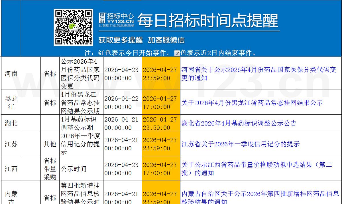 今日政策汇总与招标时间点提醒4月25日-27日