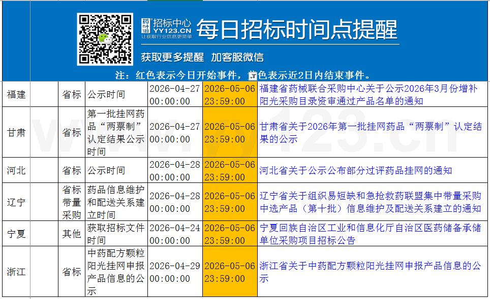 今日政策汇总与招标时间点提醒5月1日-5月6日