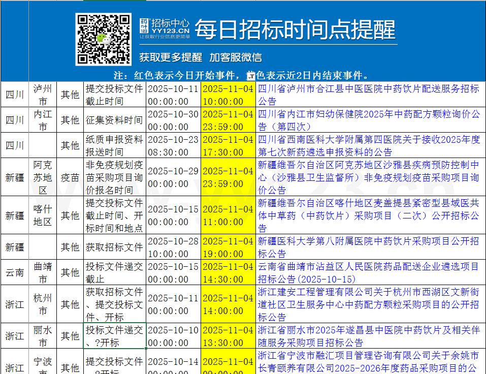 今日政策汇总与招标时间点提醒11月4日-11月5日