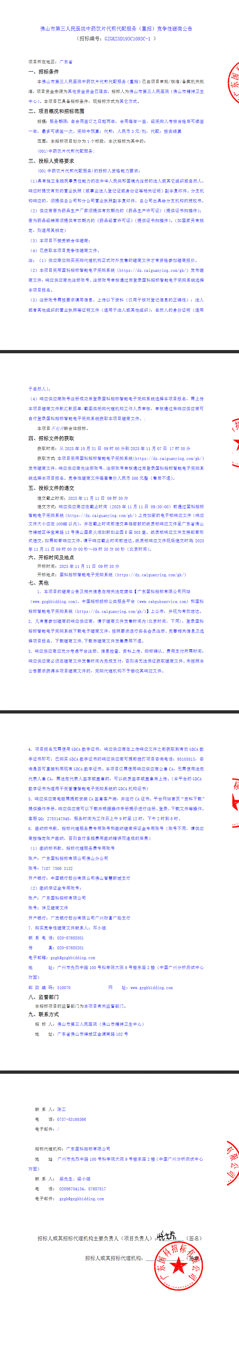 广东省佛山市第三人民医院中药饮片代煎代配服务(重招)竞争性磋商公告
