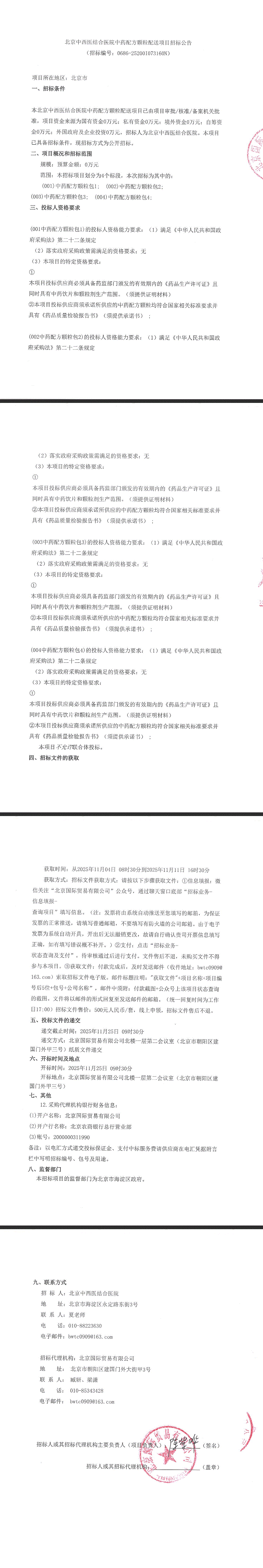 北京中西医结合医院中药配方颗粒配送项目招标公告