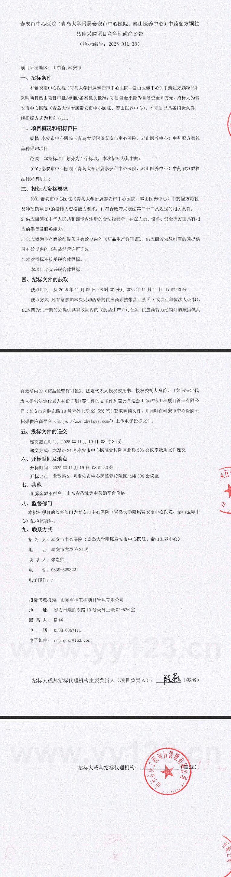 山东省泰安市中心医院(青岛大学附属泰安市中心医院、泰山医养中心)中药配方颗粒品种采购项目竞争性磋商公告