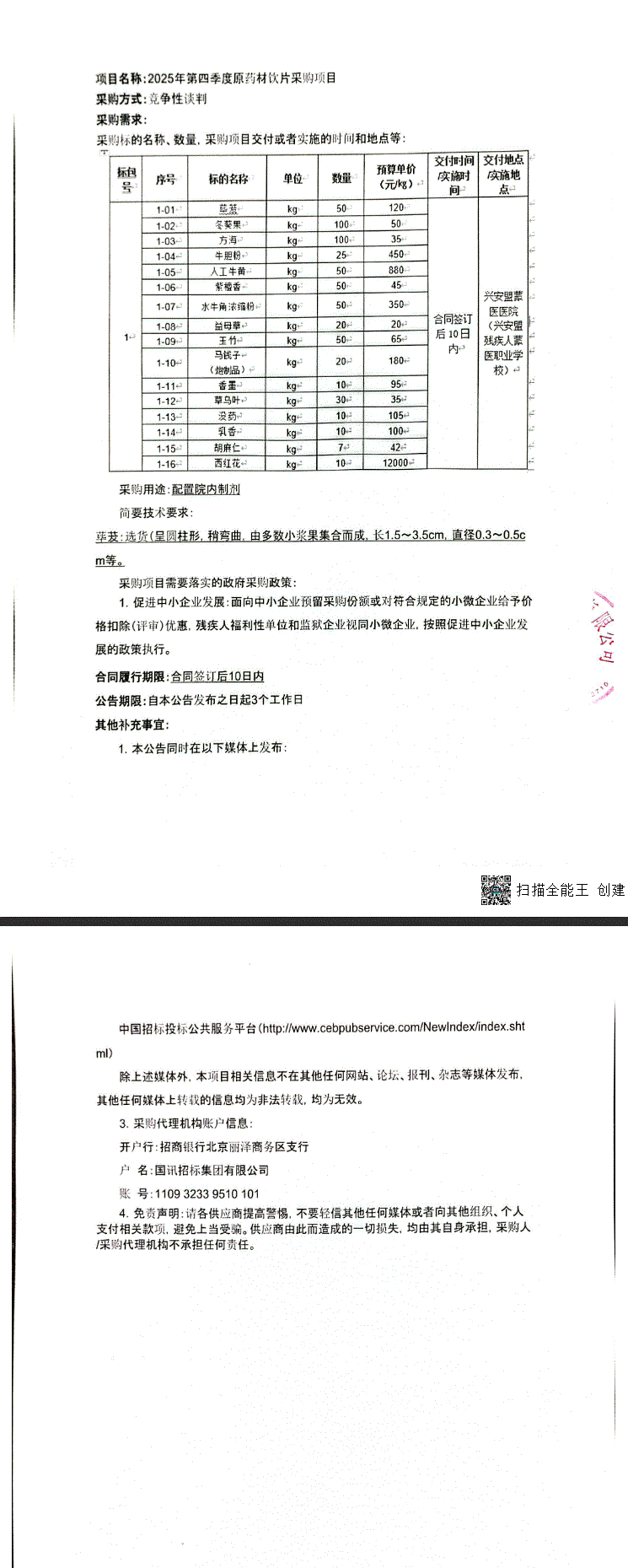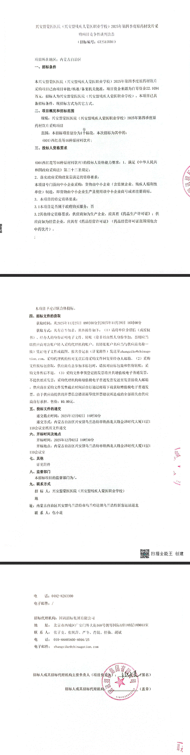 内蒙古自治区兴安盟蒙医医院(兴安盟残疾人蒙医职业学校)2025年第四季度原药材饮片采购项目竞争性谈判公告