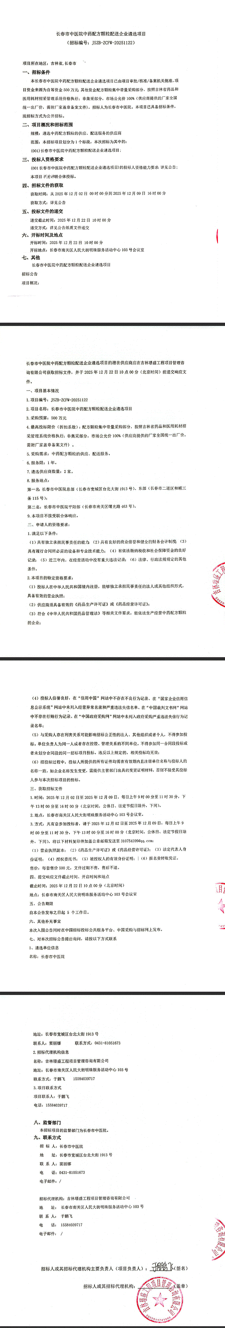 吉林省长春市中医院中药配方颗粒配送企业遴选项目
