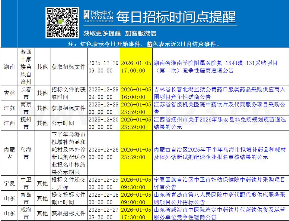 今日政策汇总与招标时间点提醒1月5日-1月6日