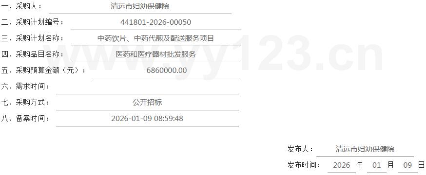 广东省清远市妇幼保健院中药饮片、中药代煎及配送服务项目