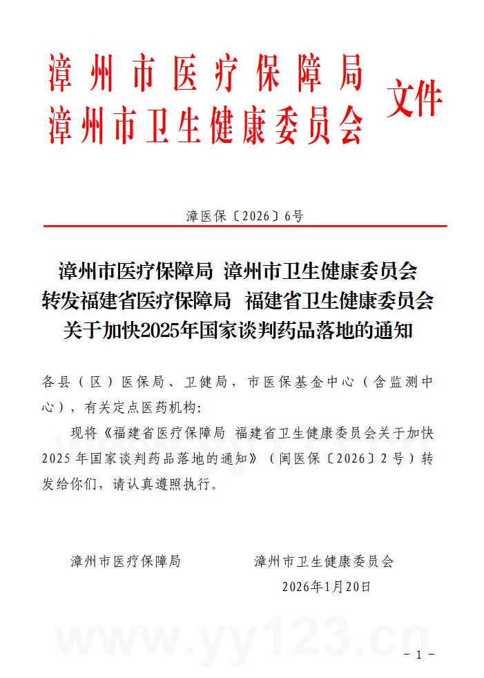 漳州市医疗保障局漳州市卫生健康委员会转发福建省医疗保障局福建省卫生健康委员会关于加快2025年国家谈判药品落地的通知