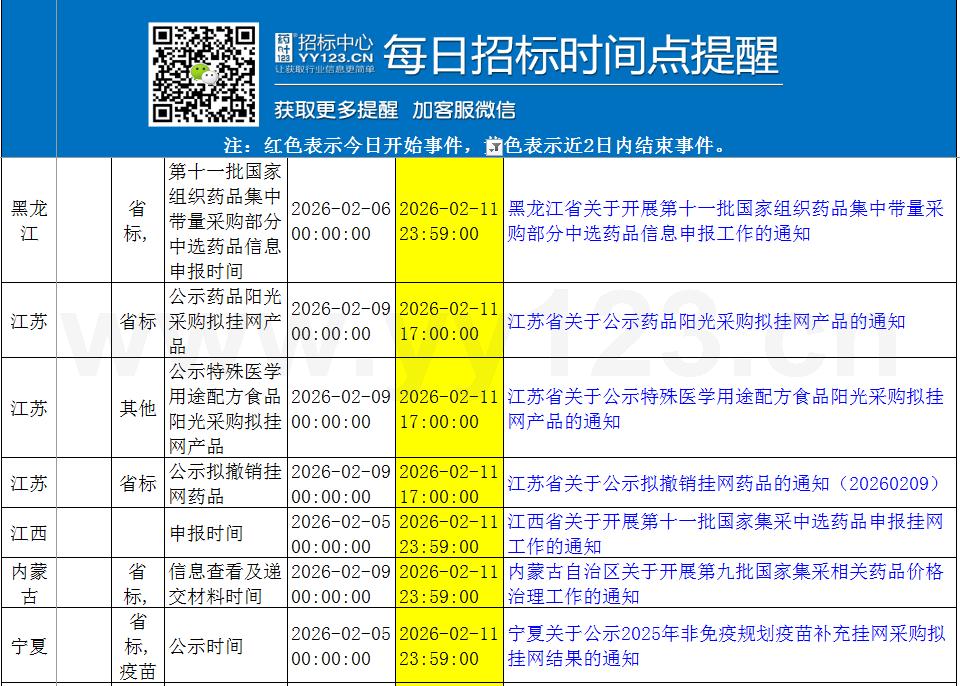 今日政策汇总与招标时间点提醒2月11日-2月12日