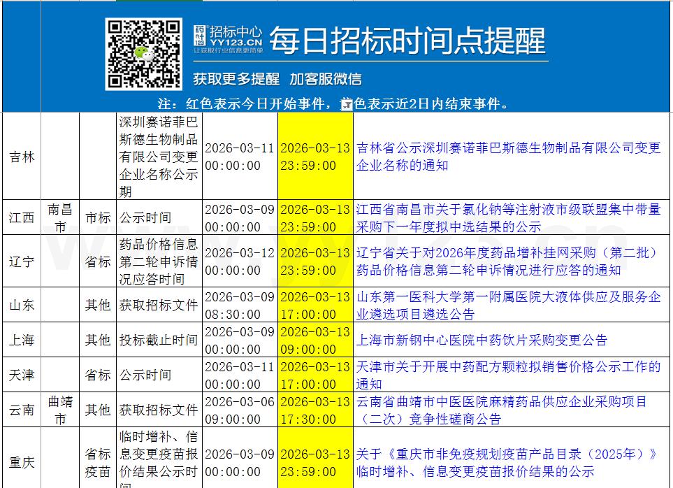 今日政策汇总与招标时间点提醒3月13日-3月15日