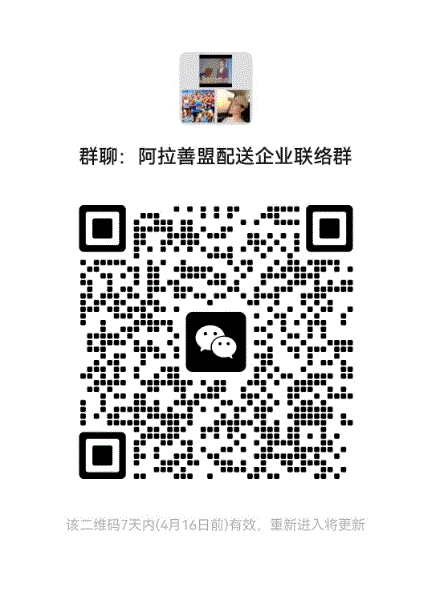 通过名单中已注册认证通过的药品、医用耗材配送企业,我中心会及时开通配送区域,待开通配送区域后,配送企业可联系生产企业在系统内建立配送关系。各配送企业通过扫描下方二维码加入“阿拉善盟配送企业联络群”(申请时需备注企业全称)。