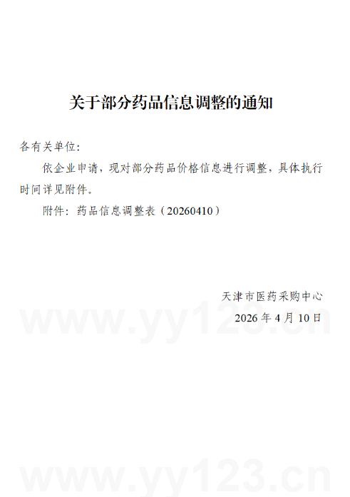 天津市关于部分药品信息调整的通知(20260410)