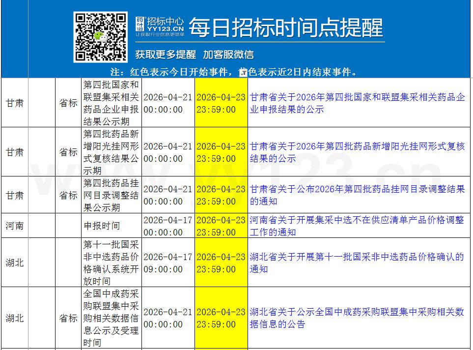 今日政策汇总与招标时间点提醒4月23日-24日